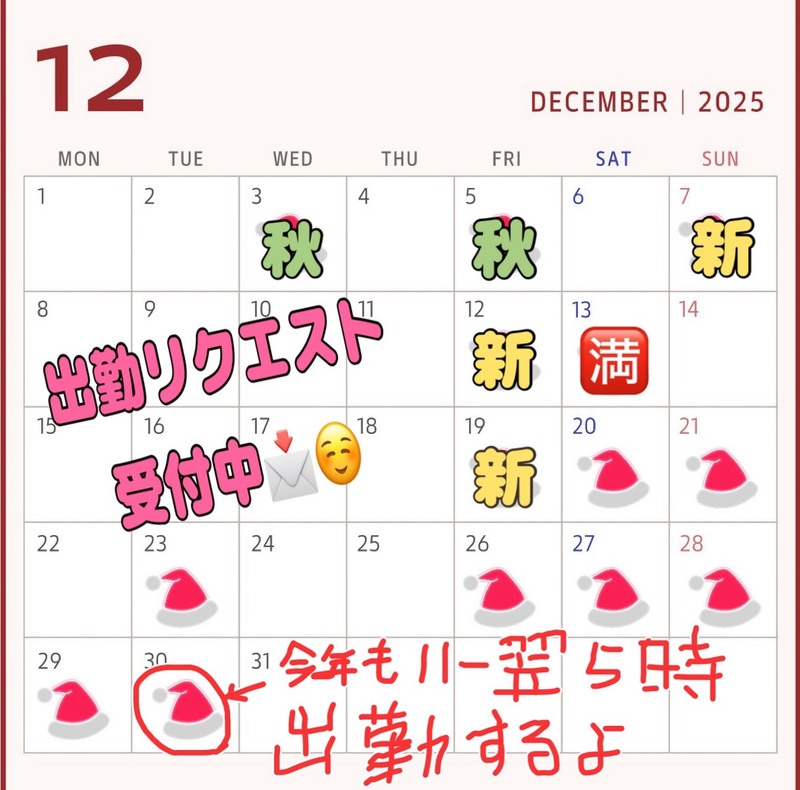 | 12/8(月) | 12/9(火) | 12/10(水) | 12/11(木) | 12/12(金) | 12/13(土) | 12/14(日) | 12/15(月) | 12/16(火) | 12/17(水) | 12/18(木) | 12/19(金) | 12/20(土) | 12/21(日) |
